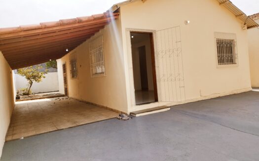 Casa com 3 quartos, sala, copa, cozinha, banheiro, área de serviços. Grande quintal na frente e nos fundos. Garagem